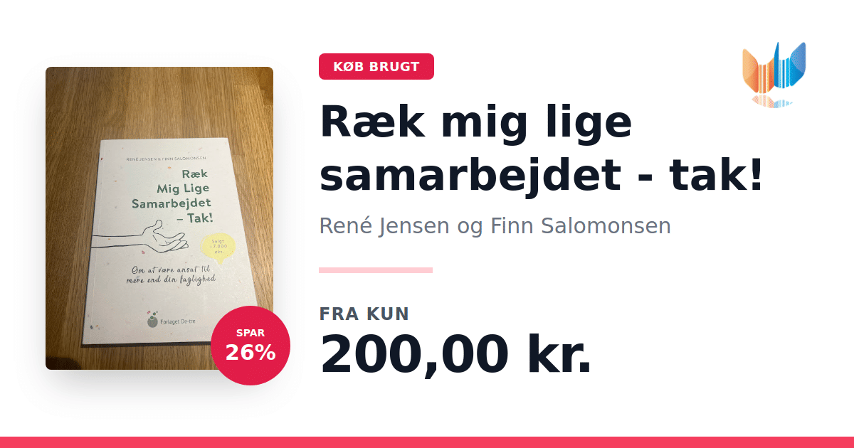 Lige nu kan du købe "Ræk mig lige samarbejdet - tak!" af René Jensen og Finn Salomonsen til kun 200,00 kr. Du sparer hele 26% af nyprisen! Bogen du ser her er brugt, og i perfekt stand. Vi har i øjeblikket kun et enkelt eksemplar til salg af "Ræk mig lige samarbejdet - tak!", så slå til mens du kan!