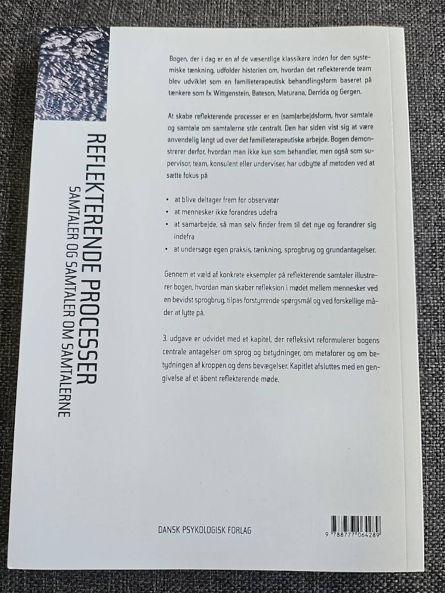 I "Reflekterende processer" dykker Tom Andersen ned i, hvordan en bevidst tilgang til samtale kan skabe rum for dyb refleksion og udvikling. Denne bog giver konkrete eksempler og praktiske redskaber, der understøtter en reflekterende dialog, hvilket er essentielt i arbejdet med supervision, teams, undervisning eller konsulentopgaver. Gennem en række illustrative cases viser Andersen, hvordan man ved at lytte, spørge og tale bevidst kan fremme en meningsfuld udveksling. Bogen er en værdifuld ressource for alle, der ønsker at styrke deres kommunikation og samarbejde gennem en struktureret tilgang til reflekterende processer.