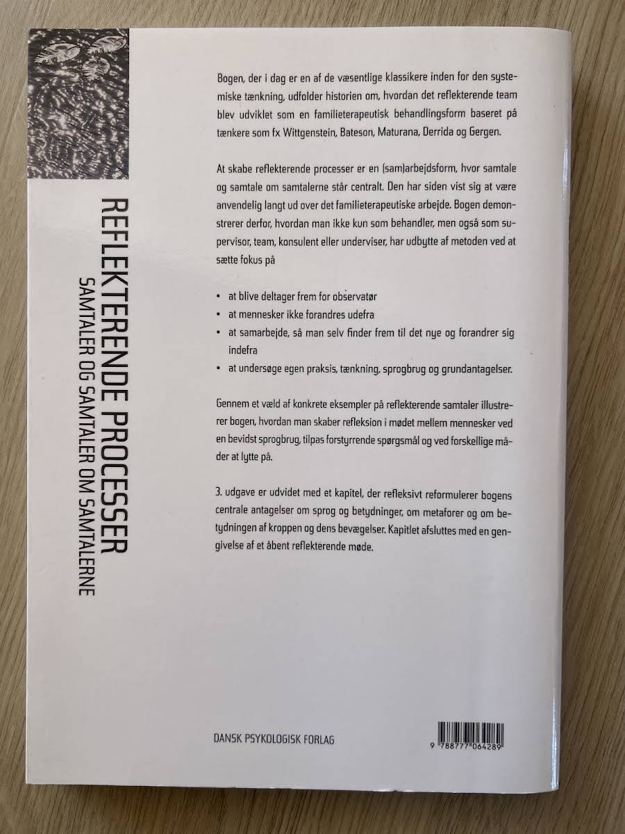 I "Reflekterende processer" dykker Tom Andersen ned i, hvordan en bevidst tilgang til samtale kan skabe rum for dyb refleksion og udvikling. Denne bog giver konkrete eksempler og praktiske redskaber, der understøtter en reflekterende dialog, hvilket er essentielt i arbejdet med supervision, teams, undervisning eller konsulentopgaver. Gennem en række illustrative cases viser Andersen, hvordan man ved at lytte, spørge og tale bevidst kan fremme en meningsfuld udveksling. Bogen er en værdifuld ressource for alle, der ønsker at styrke deres kommunikation og samarbejde gennem en struktureret tilgang til reflekterende processer.