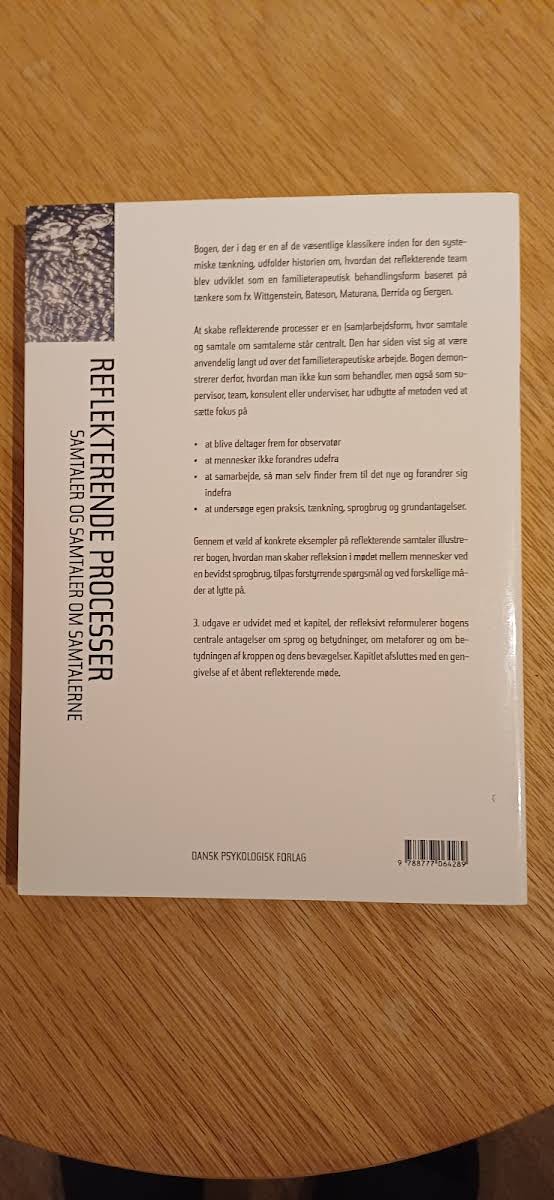 I "Reflekterende processer" dykker Tom Andersen ned i, hvordan en bevidst tilgang til samtale kan skabe rum for dyb refleksion og udvikling. Denne bog giver konkrete eksempler og praktiske redskaber, der understøtter en reflekterende dialog, hvilket er essentielt i arbejdet med supervision, teams, undervisning eller konsulentopgaver. Gennem en række illustrative cases viser Andersen, hvordan man ved at lytte, spørge og tale bevidst kan fremme en meningsfuld udveksling. Bogen er en værdifuld ressource for alle, der ønsker at styrke deres kommunikation og samarbejde gennem en struktureret tilgang til reflekterende processer.