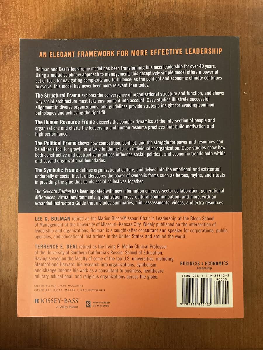 • Reframing Organizations, Lee G. Bolman, Terrence E. Deal, 9781119855125