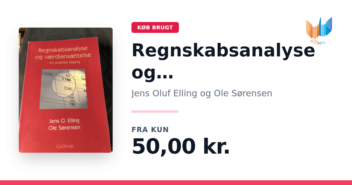 Lige nu kan du købe "Regnskabsanalyse og værdiansættelse" af Jens Oluf Elling og Ole Sørensen til kun 50,00 kr. Bogen du ser her er brugt, og i god stand. Vi har i øjeblikket 5 eksemplarer til salg af "Regnskabsanalyse og værdiansættelse", så husk at se de forskellige udgaver.