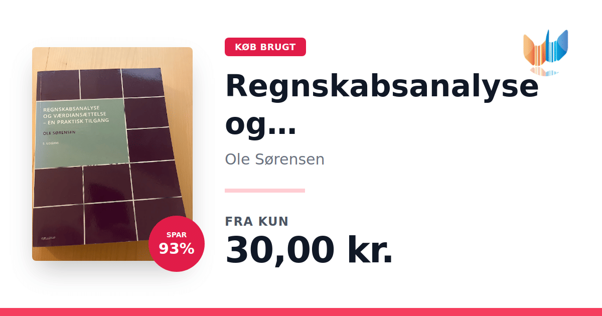 Lige nu kan du købe "Regnskabsanalyse og værdiansættelse" af Ole Sørensen til kun 30,00 kr. Du sparer hele 93% af nyprisen! Bogen du ser her er brugt, og i god stand. Vi har i øjeblikket 9 eksemplarer til salg af "Regnskabsanalyse og værdiansættelse", så husk at se de forskellige udgaver.