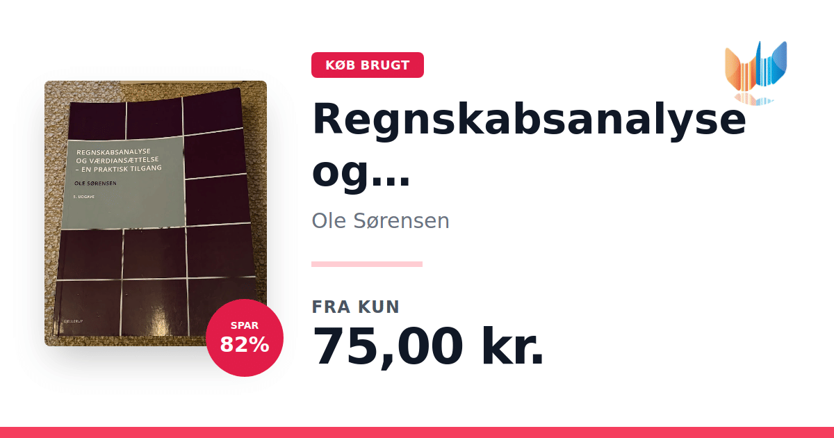 Lige nu kan du købe "Regnskabsanalyse og værdiansættelse" af Ole Sørensen til kun 75,00 kr. Du sparer hele 82% af nyprisen! Bogen du ser her er brugt, og i perfekt stand. Vi har i øjeblikket 9 eksemplarer til salg af "Regnskabsanalyse og værdiansættelse", så husk at se de forskellige udgaver.