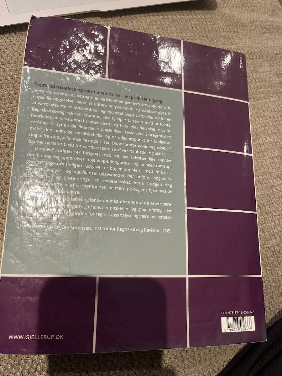 "Regnskabsanalyse og værdiansættelse" af Ole Sørensen giver en solid introduktion til de metoder, der anvendes til at vurdere en virksomheds egenkapital gennem finansielle opgørelser. Bogen belyser, hvordan den økonomiske værdi skabes og afspejles, og præsenterer læseren for en nøje udvalgt begrebsmæssig referenceramme, der gør det muligt at forstå de komplekse sammenhænge bag regnskabsanalysen. I 5. udgave, udgivet af Gjellerup i 2017, er der tilføjet tre selvstændige kapitler, der omhandler egenkapitalopgørelse, pengestrømsopgørelse og de finansielle opgørelser. Denne nytilgang uddyber, hvordan historiske årsregnskaber kan læses som indikatorer for tidligere værdiskabelse og danner grundlaget for fremtidige finansielle prognoser. Bogen suppleres med en Excel-baseret model, der effektivt understøtter nøgletalsanalyser og budgetteringsarbejde, og gør det nemt for læseren at omsætte teori til praksis. Med sin praktiske tilgang henvender "Regnskabsanalyse og værdiansættelse" sig til økonomistuderende og alle, der ønsker at få en dybere forståelse af regnskabsanalyse og den internationale udvikling inden for værdiansættelse.
