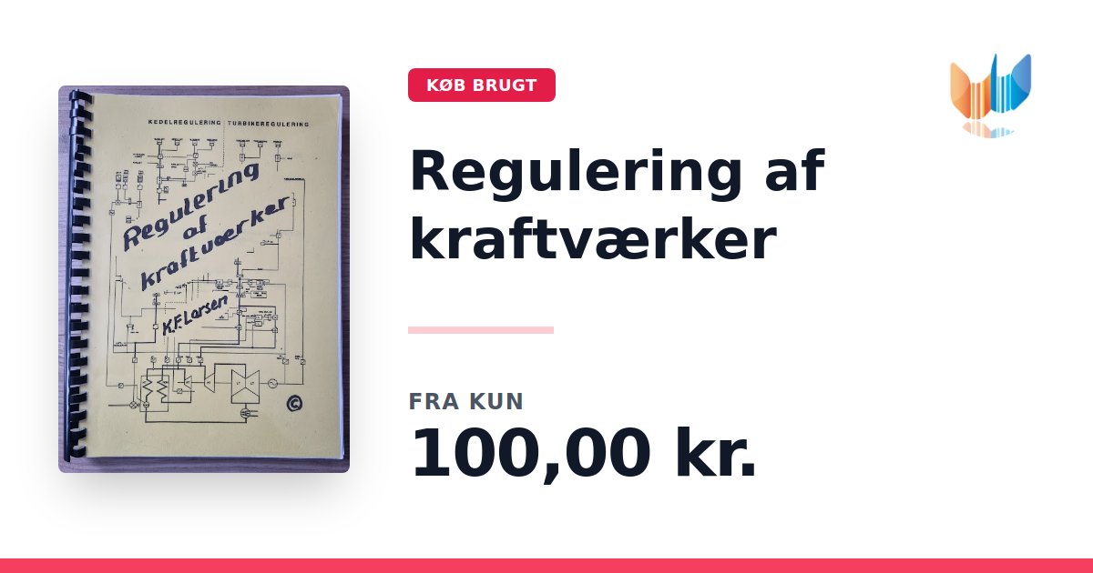 Lige nu kan du købe "Regulering af kraftværker" til kun 100,00 kr. Bogen du ser her er brugt, og i perfekt stand. Vi har i øjeblikket kun et enkelt eksemplar til salg af "Regulering af kraftværker", så slå til mens du kan!