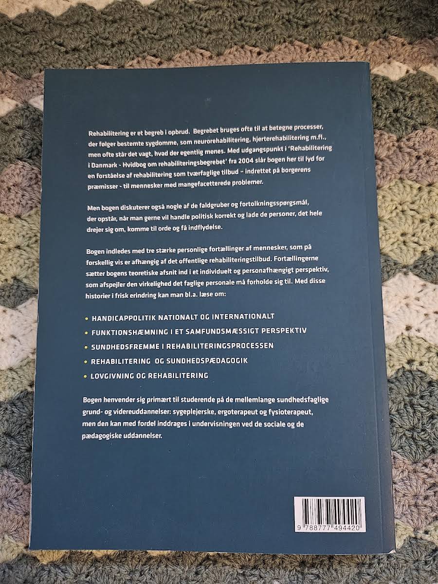 Rehabilitering samler en bred vifte af perspektiver inden for medicin, psykologi, socialt arbejde, pædagogik og beskæftigelse. Bogen præsenterer en tilgang, der understreger vigtigheden af at sætte de mennesker, som rehabilitering berører, i centrum for processen. Ved at lade de berørte komme til orde, sættes dagsordenen for, hvordan man bedst kan støtte borgere med tabte færdigheder, så de opnår en større livskvalitet efter sygdom eller skade. Med afsæt i en samfundsmæssig forståelse af rehabilitering, tilbyder denne bog en tværfaglig diskussion om de muligheder og faldgruber, der kan opstå, når man arbejder med individuelle rehabiliteringsforløb. Bogen indleder med personlige fortællinger, der placerer de teoretiske afsnit i en konkret og dagligdags kontekst. Dette gør den særligt relevant for studerende på mellemlange sundhedsfaglige grund- og videreuddannelser samt inden for sociale og pædagogiske fagområder.