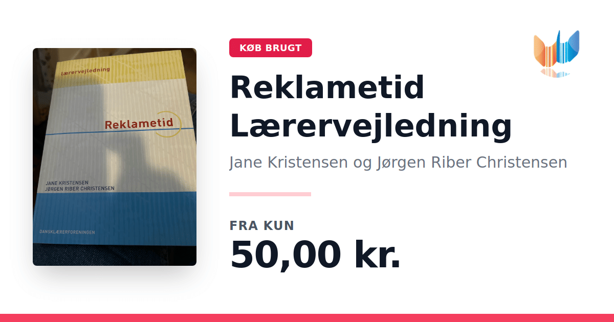 Lige nu kan du købe "Reklametid Lærervejledning" af Jane Kristensen og Jørgen Riber Christensen til kun 50,00 kr. Bogen du ser her er brugt, og i god stand. Vi har i øjeblikket 5 eksemplarer til salg af "Reklametid", så husk at se de forskellige udgaver.