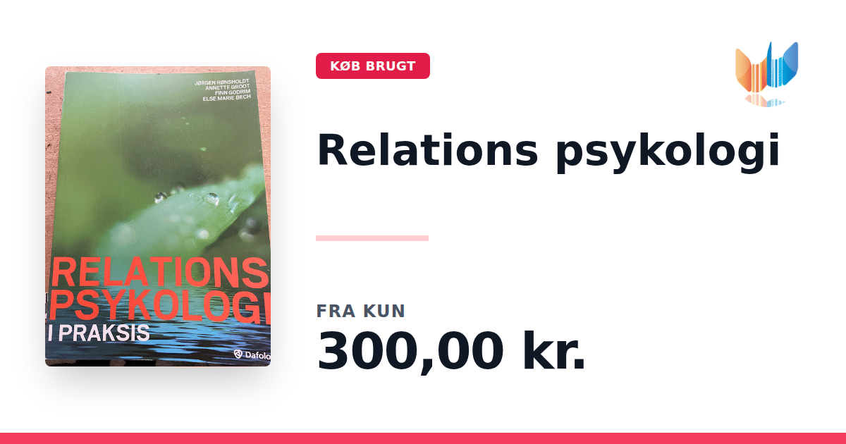Lige nu kan du købe "Relations psykologi" til kun 300,00 kr. Bogen du ser her er brugt, og i perfekt stand. Vi har i øjeblikket kun et enkelt eksemplar til salg af "Relations psykologi", så slå til mens du kan!