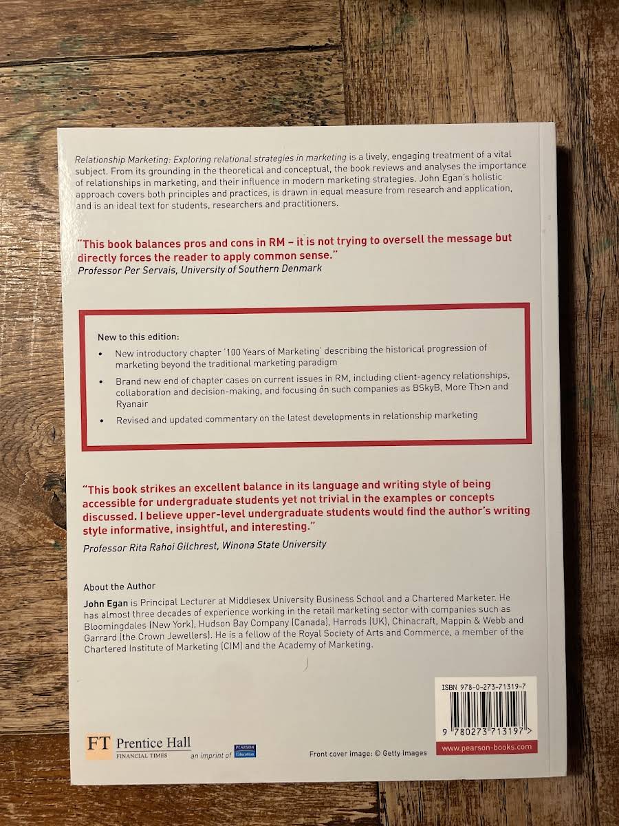 Relationship Marketing giver en indgående introduktion til, hvordan virksomheders relationer med kunder og samarbejdspartnere former moderne marketingstrategier og -praksis. Bogen udforsker de centrale principper i relationel marketing og præsenterer de vigtigste teoretiske tilgange, der ligger til grund for langvarige og værdiskabende samarbejder. Gennem en systematisk analyse kortlægges forskelle og ligheder mellem traditionel transaktionsorienteret marketing og den relationsbaserede tilgang. Dette danner et solidt afsæt for at forstå, planlægge og implementere effektive relationelle strategier i praksis.