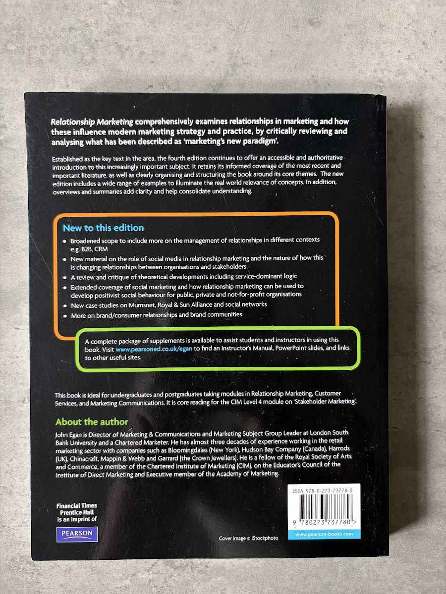 Relationship Marketing by John Egan is an indispensable academic resource that delves into the dynamic interplay between various marketing approaches and the practical realities of modern marketing. The book provides students with a solid framework of critical and analytical tools, enabling a deeper understanding of how relational strategies shape marketing practices today. Egan’s clear presentation of core themes and regular summaries aids learners in grasping complex concepts without becoming overwhelmed by dense theory. Designed to support both undergraduate and postgraduate studies, this textbook reflects the latest research in the field and offers valuable insights into customer services, marketing communications, and broader stakeholder relations. Its structured content not only informs but also equips readers to connect abstract principles with real-world applications, making Relationship Marketing a key text for anyone seeking a thorough understanding of the subject.