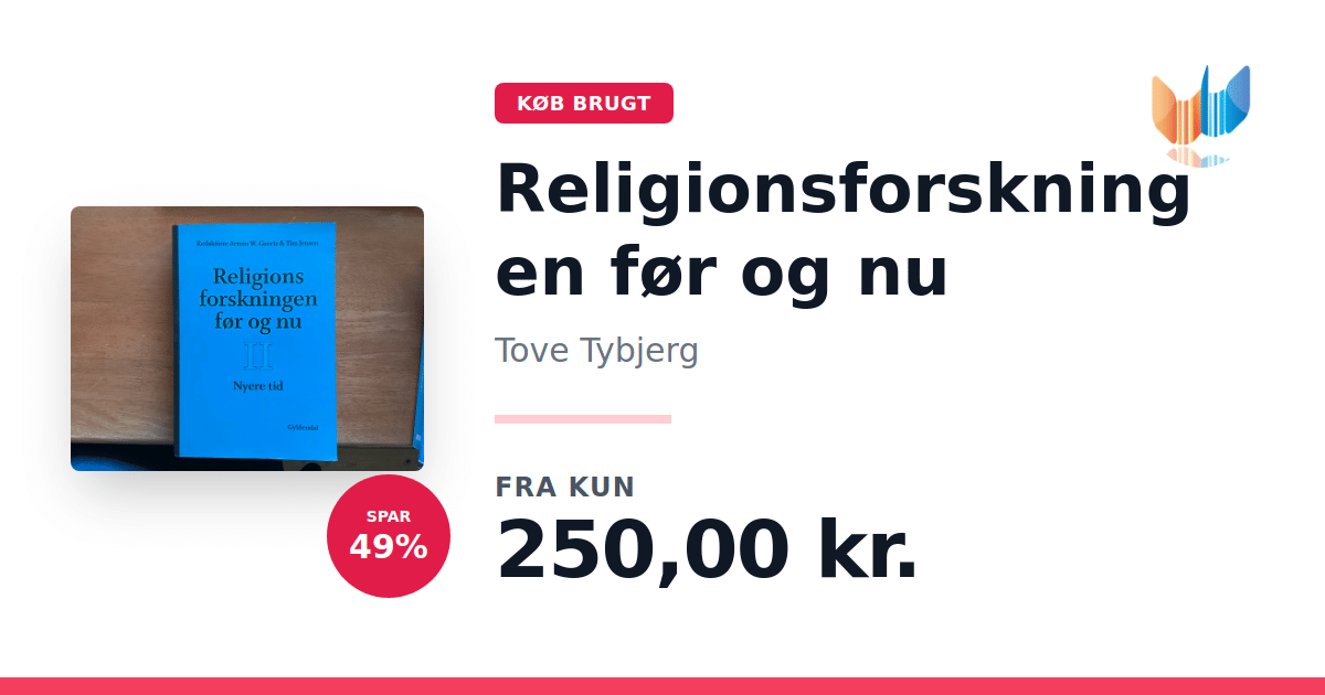 Lige nu kan du købe "Religionsforskningen før og nu" af Tove Tybjerg til kun 250,00 kr. Du sparer hele 49% af nyprisen! Bogen du ser her er brugt, og i perfekt stand. Vi har i øjeblikket 2 eksemplarer til salg af "Religionsforskningen før og nu", så husk at se de forskellige udgaver.