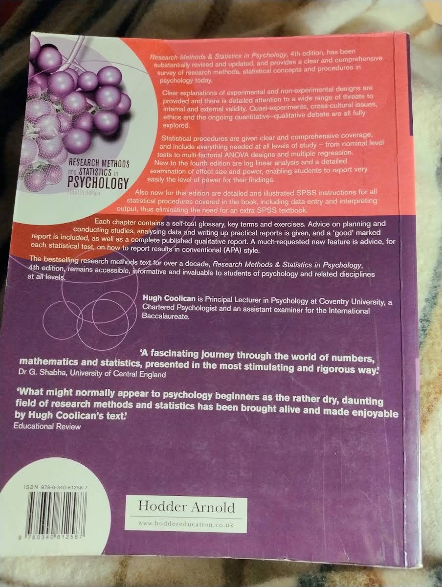 • Research Methods and Statistics in Psychology, Hugh Coolican, 9780340812587