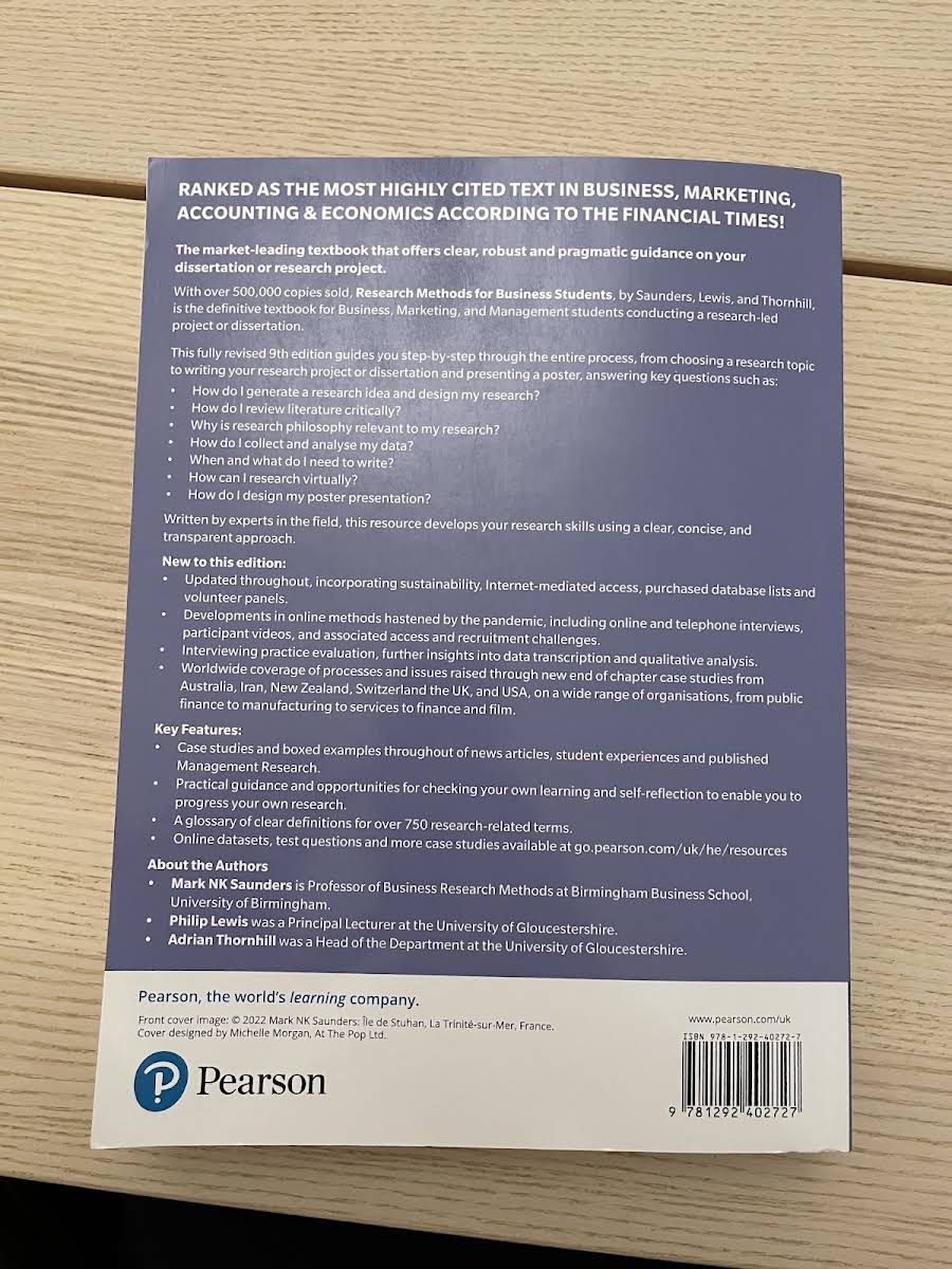 Research Methods for Business Students by Mark Saunders and Philip Lewis is an essential guide for business, marketing, and management students embarking on a research project or dissertation. This 2023 edition offers clear, robust, and pragmatic advice to help you navigate every stage of the research process - from generating a research idea and critically reviewing the literature, to designing your methodology and analyzing your data. With a focus on building confidence in your research skills, the book combines theory with practical examples, self-test questions, and thought-provoking activities. Detailed case studies and real-world examples illuminate the application of both traditional and virtual research methods, while comprehensive glossaries and reflective prompts guide you as you progress from selecting a topic to effectively presenting your findings.