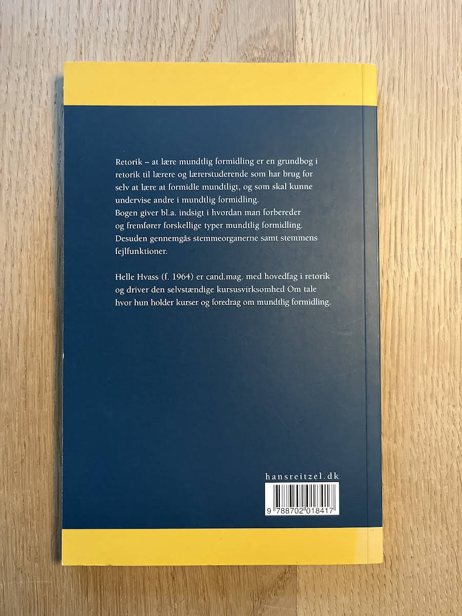 "Retorik" af Helle Hvass er en grundbog, der henvender sig til både den praktiserende lærer og den lærerstuderende. Bogen giver et solidt indblik i retorikkens verden og fremhæver vigtigheden af effektiv mundtlig formidling for dem, der dagligt står foran eleverne. Med et klart og didaktisk sprog illustreres, hvordan man både kan forbedre sin egen kommunikation og lære andre at gøre det. Gennem en række gennemarbejdede emner tager værket læseren i hånden og præsenterer en overskuelig tilgang til de mange facetter af retorik. Der stilles fokus på planlægning, forberedelse og fremførelse af forskellige mundtlige præsentationer, og bogen giver desuden indsigt i stemmeorganernes rolle og potentielle udfordringer. "Retorik" er et uundværligt redskab for alle, der ønsker at mestre kunsten at kommunikere.