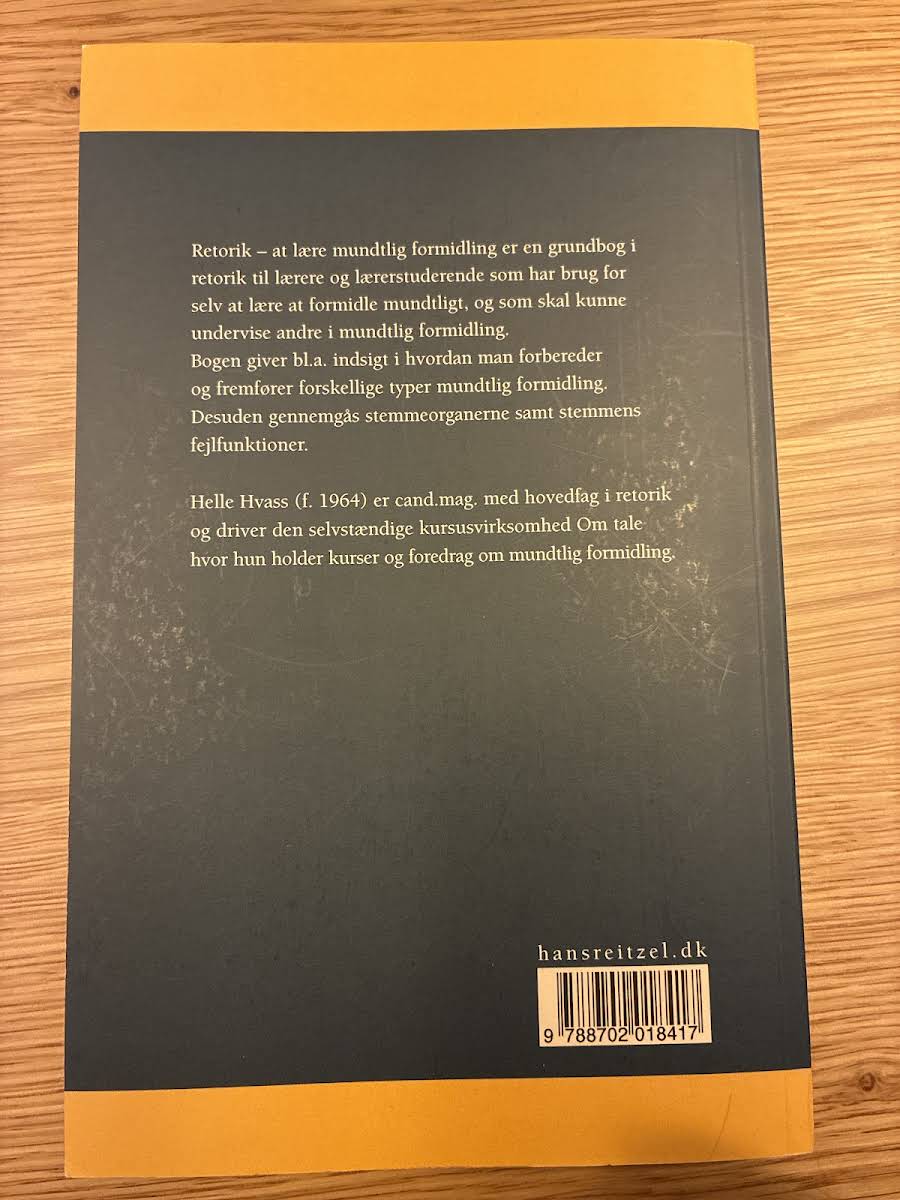 "Retorik" af Helle Hvass er en grundbog, der henvender sig til både den praktiserende lærer og den lærerstuderende. Bogen giver et solidt indblik i retorikkens verden og fremhæver vigtigheden af effektiv mundtlig formidling for dem, der dagligt står foran eleverne. Med et klart og didaktisk sprog illustreres, hvordan man både kan forbedre sin egen kommunikation og lære andre at gøre det. Gennem en række gennemarbejdede emner tager værket læseren i hånden og præsenterer en overskuelig tilgang til de mange facetter af retorik. Der stilles fokus på planlægning, forberedelse og fremførelse af forskellige mundtlige præsentationer, og bogen giver desuden indsigt i stemmeorganernes rolle og potentielle udfordringer. "Retorik" er et uundværligt redskab for alle, der ønsker at mestre kunsten at kommunikere.