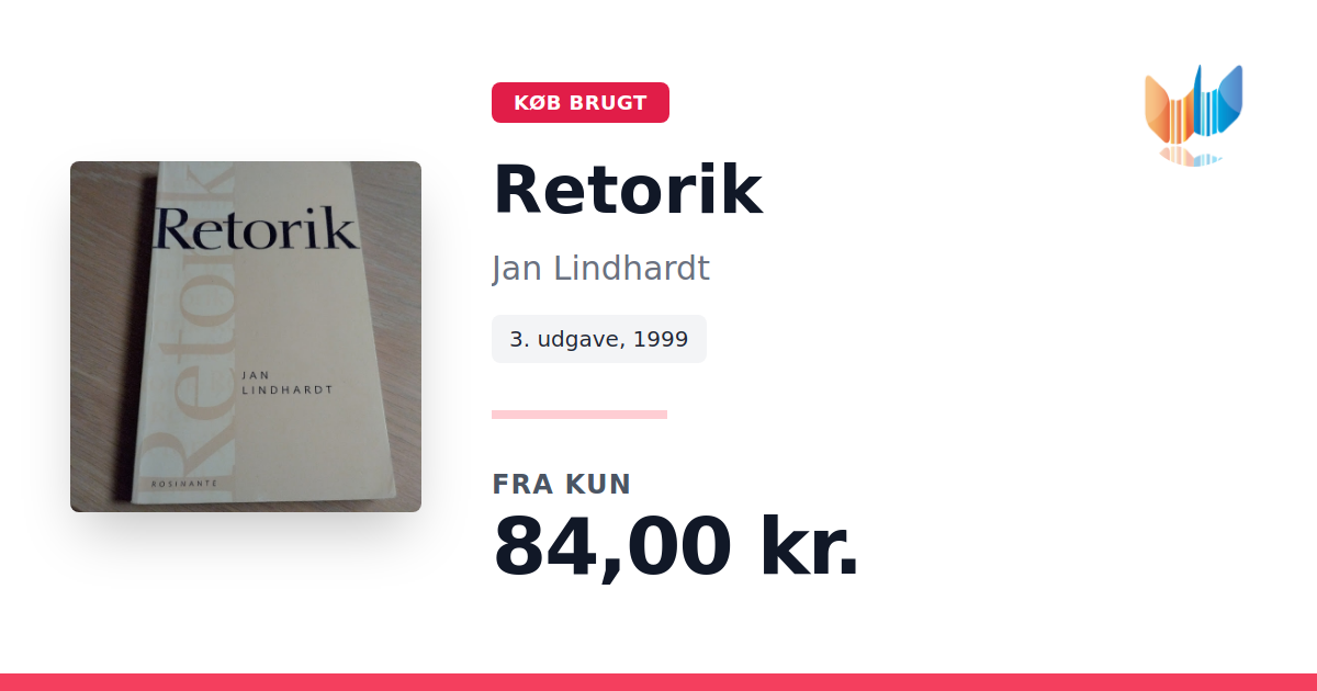 Lige nu kan du købe "Retorik" af Jan Lindhardt til kun 84,00 kr. Bogen du ser her er brugt, og i god stand. Vi har i øjeblikket kun et enkelt eksemplar til salg af "Retorik", så slå til mens du kan!