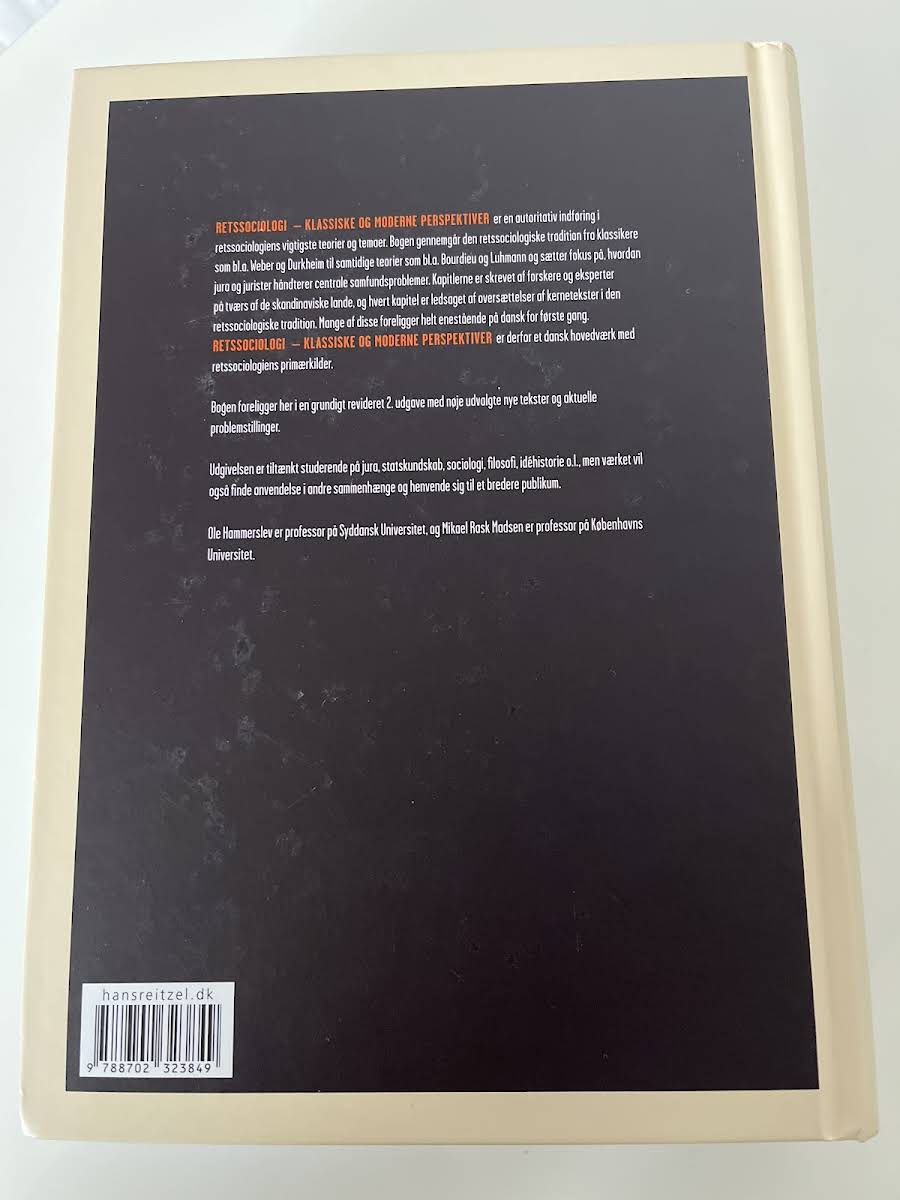 En autoritativ indføring i retssociologiens centrale teorier og temaer. Bogen sporer den retssociologiske tradition fra klassikere som Weber og Durkheim til moderne perspektiver, og den giver læseren et indblik i, hvordan den juridiske verden belyses gennem en sociologisk optik. Kapitel forfatterne er anerkendte forskere og eksperter fra hele Skandinavien, og hvert kapitel suppleres med nøje udvalgte oversættelser af kernetekster inden for faget. I denne grundigt reviderede 2. udgave præsenteres adskillige nye kapitler og tekster, som yderligere beriger forståelsen af retssociologi. Ole Hammerslev er professor på Syddansk Universitet, og Mikael Rask Madsen er professor på Københavns Universitet. Med sine over 1000 sider tilbyder Retssociologi et omfattende og nuanceret indblik i et af samfundets mest komplekse og fascinerende værker.