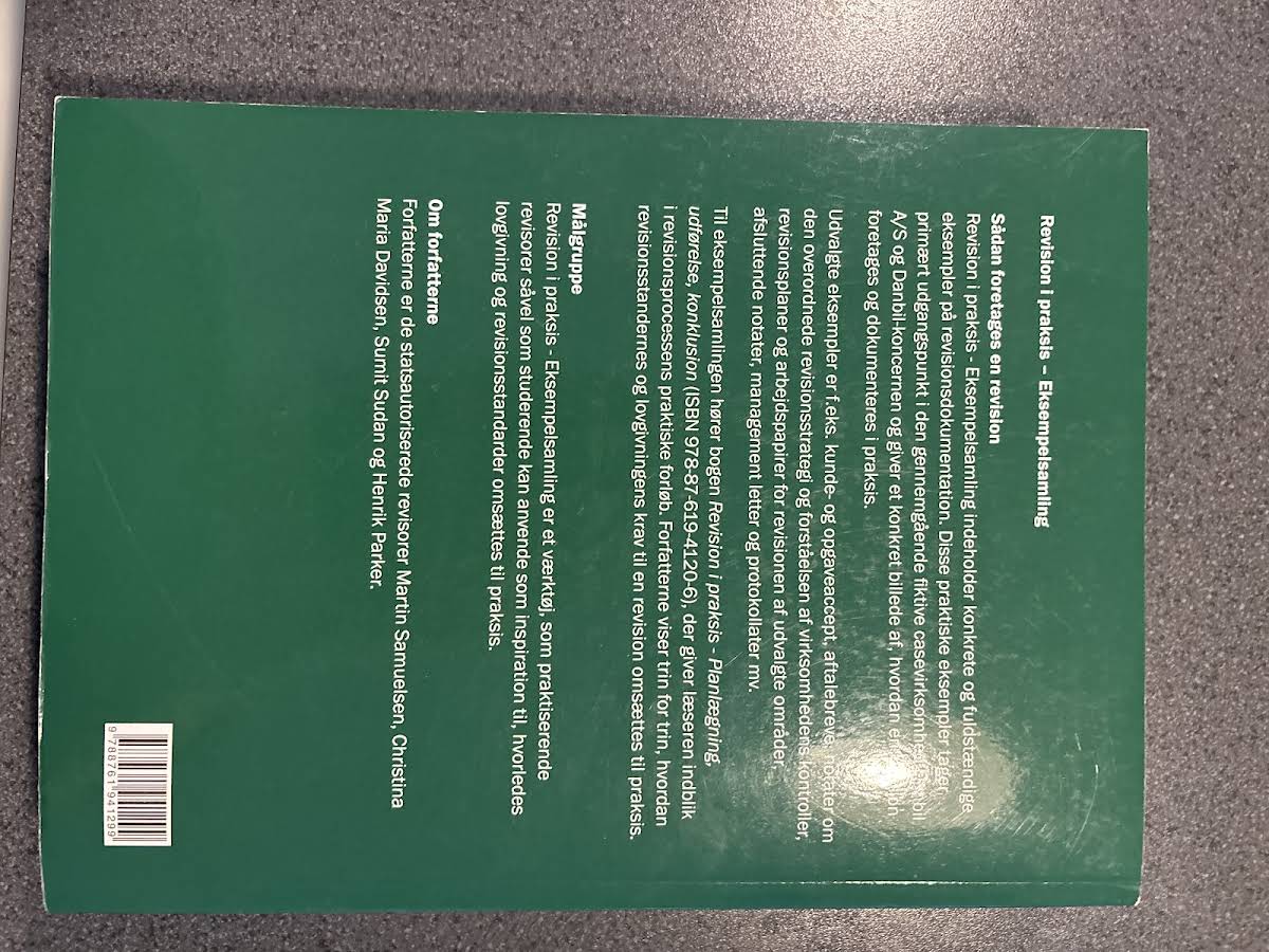"Revision i praksis" præsenterer en dybdegående og praktisk gennemgang af revisionsmetoder, som nøje afspejler de gældende lovkrav og standarder. Bogen illustrerer, hvordan kompleks revisionsteori omsættes til praksis med klare eksempler og figurer, der tydeliggør processen fra planlægning og risikovurdering til udførelse og rapportering. Med sine 538 sider byder denne anden udgave på et omfattende overblik over revisionsdokumentationen, herunder opgaveaccept, revisionsplaner, arbejdspapirer og øvrige relevante dokumenter. Det praktiske fokus gør den til et uundværligt værktøj for både praktiserende revisorer og studerende, som ønsker en solid indsigt i revisionsfaget. Forfatterne Martin Samuelsen, Christina Maria Davidsen, Sumit Sudan og Henrik Parker, alle statsautoriserede revisorer med stor erfaring, giver med "Revision i praksis" læseren et velunderbygget fagligt fundament og inspiration til at imødekomme de krav, der stilles i en moderne revisionspraksis.