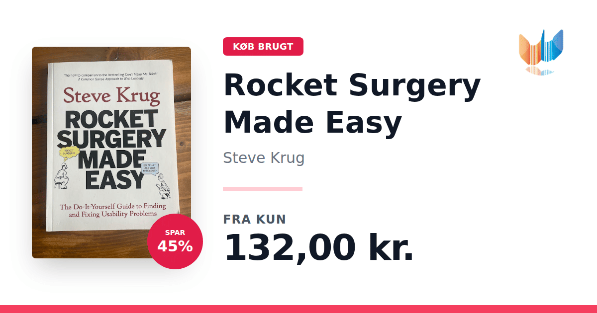 Lige nu kan du købe "Rocket Surgery Made Easy" af Steve Krug til kun 132,00 kr. Du sparer hele 45% af nyprisen! Bogen du ser her er brugt, og i perfekt stand. Vi har i øjeblikket kun et enkelt eksemplar til salg af "Rocket Surgery Made Easy", så slå til mens du kan!
