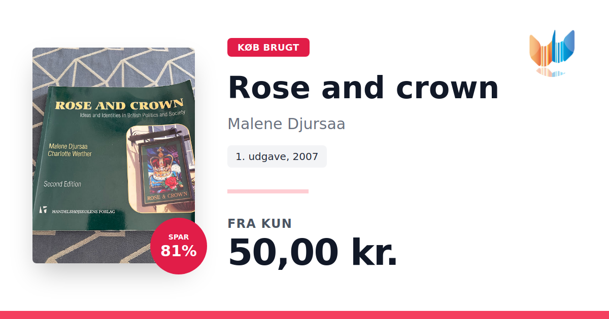 Lige nu kan du købe "Rose and crown" af Malene Djursaa til kun 50,00 kr. Du sparer hele 81% af nyprisen! Bogen du ser her er brugt, og i perfekt stand. Vi har i øjeblikket 4 eksemplarer til salg af "Rose and crown", så husk at se de forskellige udgaver.