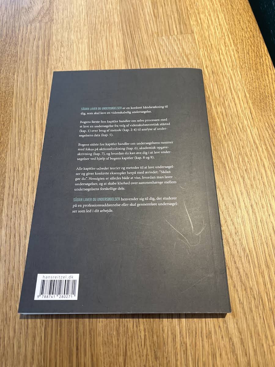 "Sådan laver du undersøgelser" er en praktisk guide, der henvender sig til både studerende på professionsuddannelser og fagfolk, der skal lave undersøgelser som led i deres arbejde. Bogen inspirerer og giver konkrete forslag til, hvordan man fra start til slut kan gribe undersøgelsesprocessen an. I de første kapitler forklares, hvordan man udvælger et videnskabsteoretisk udgangspunkt, anvender metoder og indsamler data, mens de afsluttende kapitler fokuserer på undersøgelsens overordnede rammer. Aktionsforskning, akademisk skrivning og øvelser i praksis præsenteres med klare og håndgribelige eksempler, der gør teorien tilgængelig. Med en kombination af teoretiske indsigter og praktiske råd skaber bogen en helhedsforståelse af, hvordan de enkelte dele af en undersøgelse hænger sammen. Denne sammenhængende tilgang giver læseren redskaberne til både at forstå og udføre undersøgelser på en struktureret og effektiv måde.