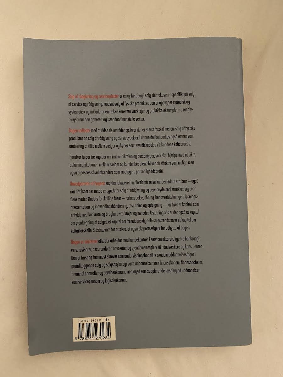 Salg er ligesom et håndværk, hvor de rette redskaber gør hele forskellen. I Salg af rådgivning og serviceydelser præsenterer Jens Lassen et omfattende perspektiv på, hvordan proaktivt salg og en velfyldt værktøjskasse giver sælgeren de bedste forudsætninger for at matche kundens behov og skabe værdifulde løsninger. Bogen fokuserer på, hvordan principper og metoder, der også anvendes i butikssalg inden for brancher som elektronik, vin, køkkener, badeværelser og autoværksteder, knytter ekspertrollen tæt sammen med rådgivende salgsteknikker. Bogen indledes med en klar afgrænsning af forskellene mellem salg af fysiske produkter og salg af rådgivning og serviceydelser, hvorefter de fundamentale elementer i en succesfuld salgsproces – forståelsen for kundens købsproces, værdiskabelse og tillid – udfoldes i detaljer. Herefter uddybes strukturen og de forskellige faser i kundemødet, inden kapitler om salgsplanlægning, personlig effektivitet og fremtidens digitale trends runder bogen af. Med sit indsigtsfulde indhold retter bogen sig primært mod studerende inden for finansøkonomi, serviceøkonomi og beslægtede uddannelser, men kan ligeledes anvendes som en værdifuld ressource på tværs af adskillige fagområder.