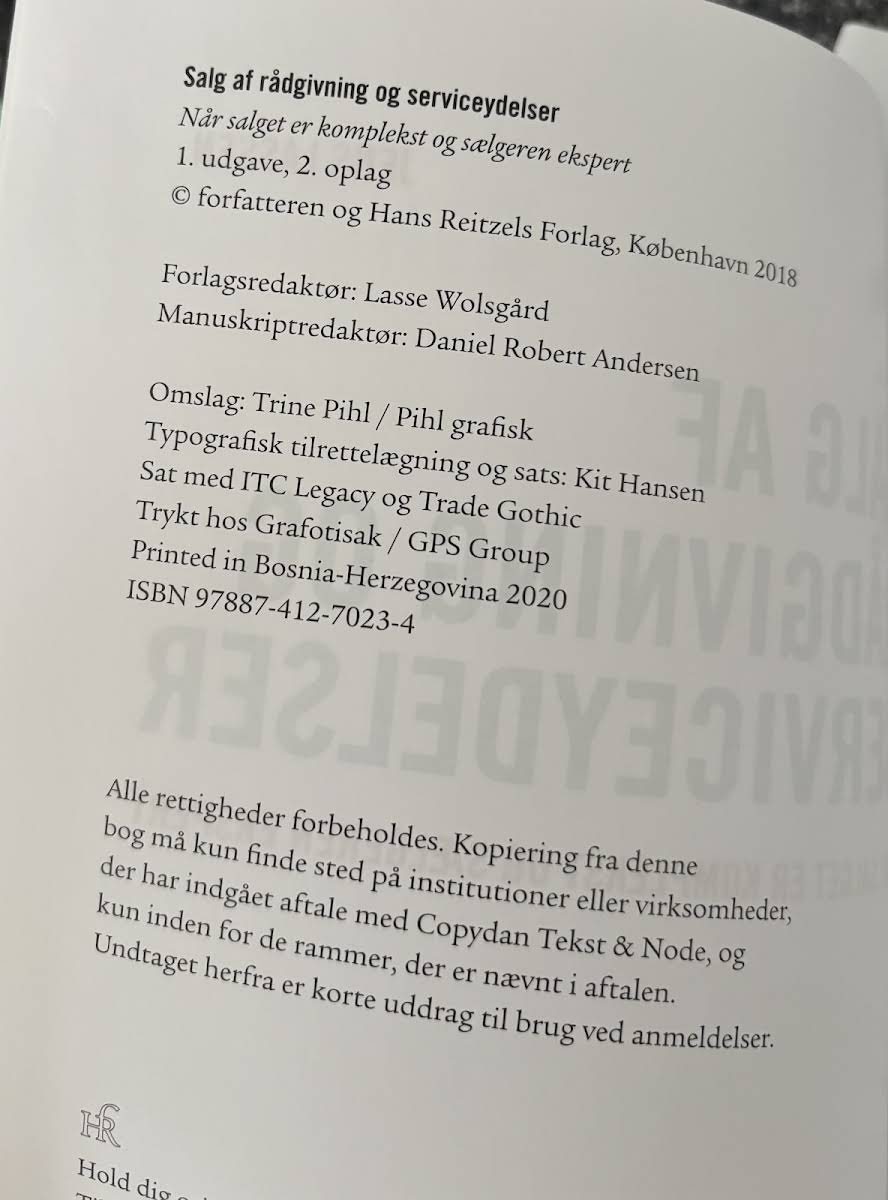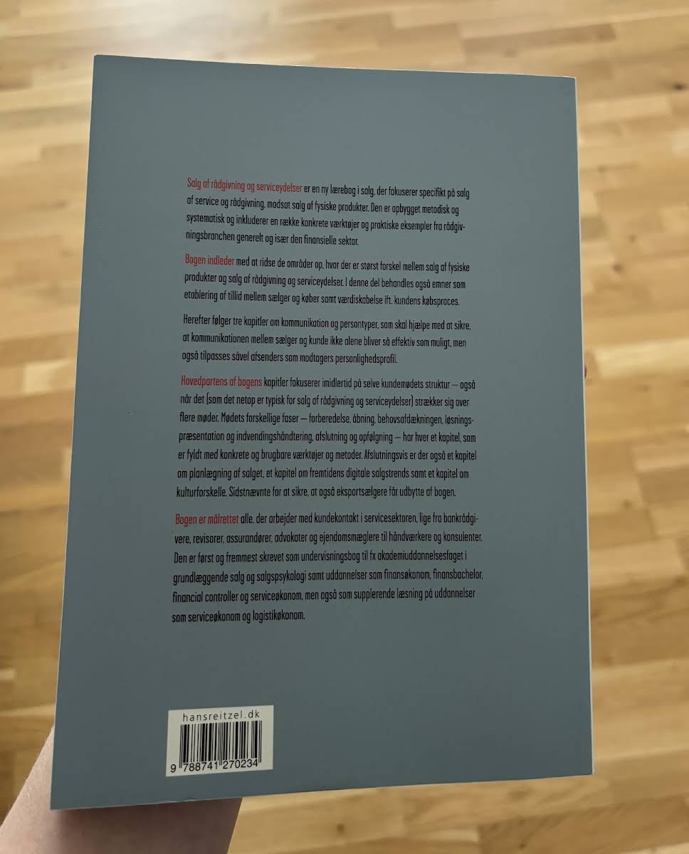 Salg er ligesom et håndværk, hvor de rette redskaber gør hele forskellen. I Salg af rådgivning og serviceydelser præsenterer Jens Lassen et omfattende perspektiv på, hvordan proaktivt salg og en velfyldt værktøjskasse giver sælgeren de bedste forudsætninger for at matche kundens behov og skabe værdifulde løsninger. Bogen fokuserer på, hvordan principper og metoder, der også anvendes i butikssalg inden for brancher som elektronik, vin, køkkener, badeværelser og autoværksteder, knytter ekspertrollen tæt sammen med rådgivende salgsteknikker. Bogen indledes med en klar afgrænsning af forskellene mellem salg af fysiske produkter og salg af rådgivning og serviceydelser, hvorefter de fundamentale elementer i en succesfuld salgsproces – forståelsen for kundens købsproces, værdiskabelse og tillid – udfoldes i detaljer. Herefter uddybes strukturen og de forskellige faser i kundemødet, inden kapitler om salgsplanlægning, personlig effektivitet og fremtidens digitale trends runder bogen af. Med sit indsigtsfulde indhold retter bogen sig primært mod studerende inden for finansøkonomi, serviceøkonomi og beslægtede uddannelser, men kan ligeledes anvendes som en værdifuld ressource på tværs af adskillige fagområder.