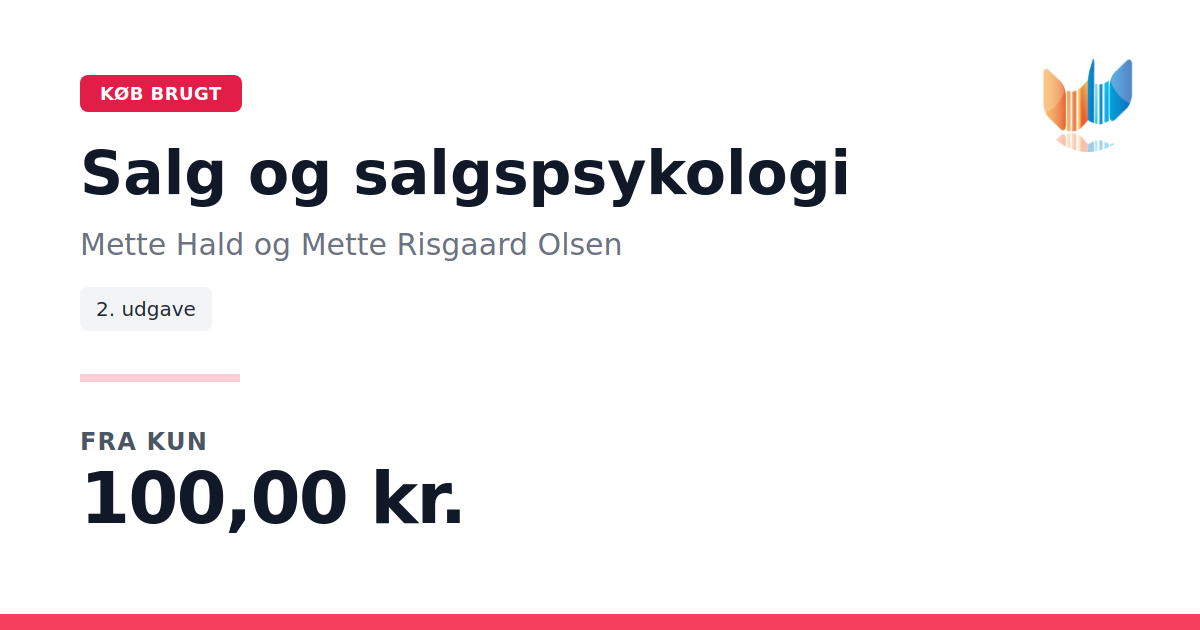 Lige nu kan du købe "Salg og salgspsykologi" af Mette Hald og Mette Risgaard Olsen til kun 100,00 kr. Bogen du ser her er brugt, og i god stand. Vi har i øjeblikket kun et enkelt eksemplar til salg af "Salg og salgspsykologi", så slå til mens du kan!