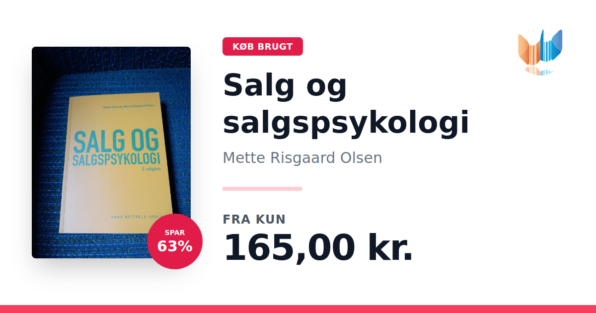 Lige nu kan du købe "Salg og salgspsykologi" af Mette Risgaard Olsen til kun 165,00 kr. Du sparer hele 63% af nyprisen! Bogen du ser her er brugt, og i perfekt stand. Vi har i øjeblikket 4 eksemplarer til salg af "Salg og salgspsykologi", så husk at se de forskellige udgaver.