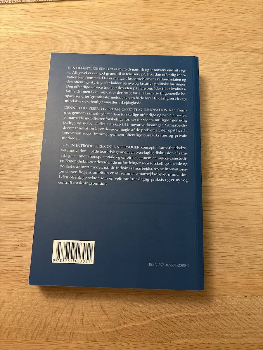 "Samarbejdsdrevet innovation i den offentlige sektor" er en indsigtsfuld bog af Eva Sørensen, der undersøger, hvordan offentlig innovation kan fremmes gennem samarbejde mellem forskellige aktører. Bogen sætter fokus på de dynamiske muligheder, som opstår, når offentlige og private parter går sammen for at udvikle nye løsninger. Med en kombination af teoretiske perspektiver og empiriske eksempler belyses både potentialet og de udfordringer, der opstår i innovationsprocesser styret af samarbejde. Eva Sørensen demonstrerer, hvordan fælles viden og gensidig læring kan omdanne den offentlige sektors arbejdsmetoder og skabe robuste og innovative løsninger. Bogen opfordrer til, at samarbejde bliver en naturlig og integreret del af den offentlige praksis og bidrager til at udforske et centralt forskningsområde med stor relevans for nutidens samfund. Med sit dybdegående indblik i de sociale og politiske aktørers roller, leverer denne bog et solidt bidrag til forståelsen af samarbejdsbaseret innovation i den offentlige sektor.