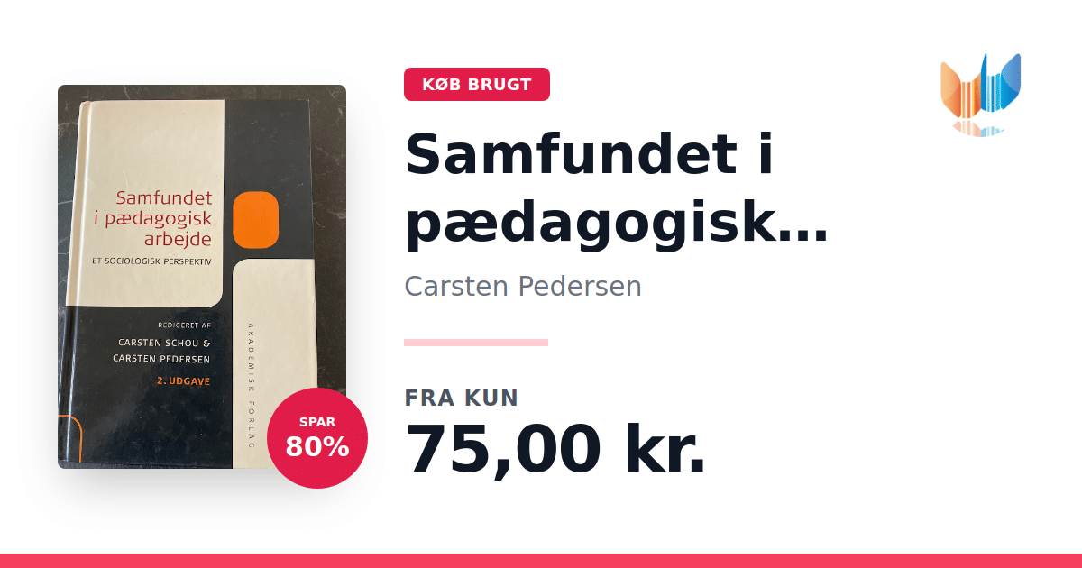 Lige nu kan du købe "Samfundet i pædagogisk arbejde" af Carsten Pedersen til kun 75,00 kr. Du sparer hele 80% af nyprisen! Bogen du ser her er brugt, og i perfekt stand. Vi har i øjeblikket 7 eksemplarer til salg af "Samfundet i pædagogisk arbejde", så husk at se de forskellige udgaver.