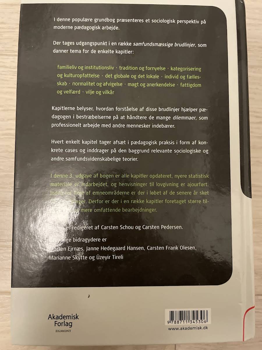 Med "Samfundet i pædagogisk arbejde" inviteres læseren til at udforske, hvordan samfundsmæssige forhold præger den pædagogiske praksis. Bogen anvender et sociologisk perspektiv og væver teorier og praksis sammen gennem cases og eksempler. Den ajourføres med den nyeste lovgivning og relevante ændringer, som har fundet sted inden for området i de senere år. Rettet mod studerende på pædagogiske uddannelser, bidrager denne grundbog med opdateret teoretisk og praktisk viden, der sætter fokus på centrale emner i det moderne pædagogiske landskab. Med en solid kombination af samfundsvidenskabelige teorier og praktiske eksempler giver forfatterne Carsten Pedersen og Carsten Schou et værdifuldt redskab til forståelsen af, hvordan samfundet influerer det pædagogiske arbejde.
