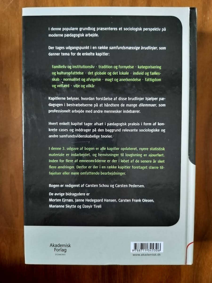 Med "Samfundet i pædagogisk arbejde" inviteres læseren til at udforske, hvordan samfundsmæssige forhold præger den pædagogiske praksis. Bogen anvender et sociologisk perspektiv og væver teorier og praksis sammen gennem cases og eksempler. Den ajourføres med den nyeste lovgivning og relevante ændringer, som har fundet sted inden for området i de senere år. Rettet mod studerende på pædagogiske uddannelser, bidrager denne grundbog med opdateret teoretisk og praktisk viden, der sætter fokus på centrale emner i det moderne pædagogiske landskab. Med en solid kombination af samfundsvidenskabelige teorier og praktiske eksempler giver forfatterne Carsten Pedersen og Carsten Schou et værdifuldt redskab til forståelsen af, hvordan samfundet influerer det pædagogiske arbejde.