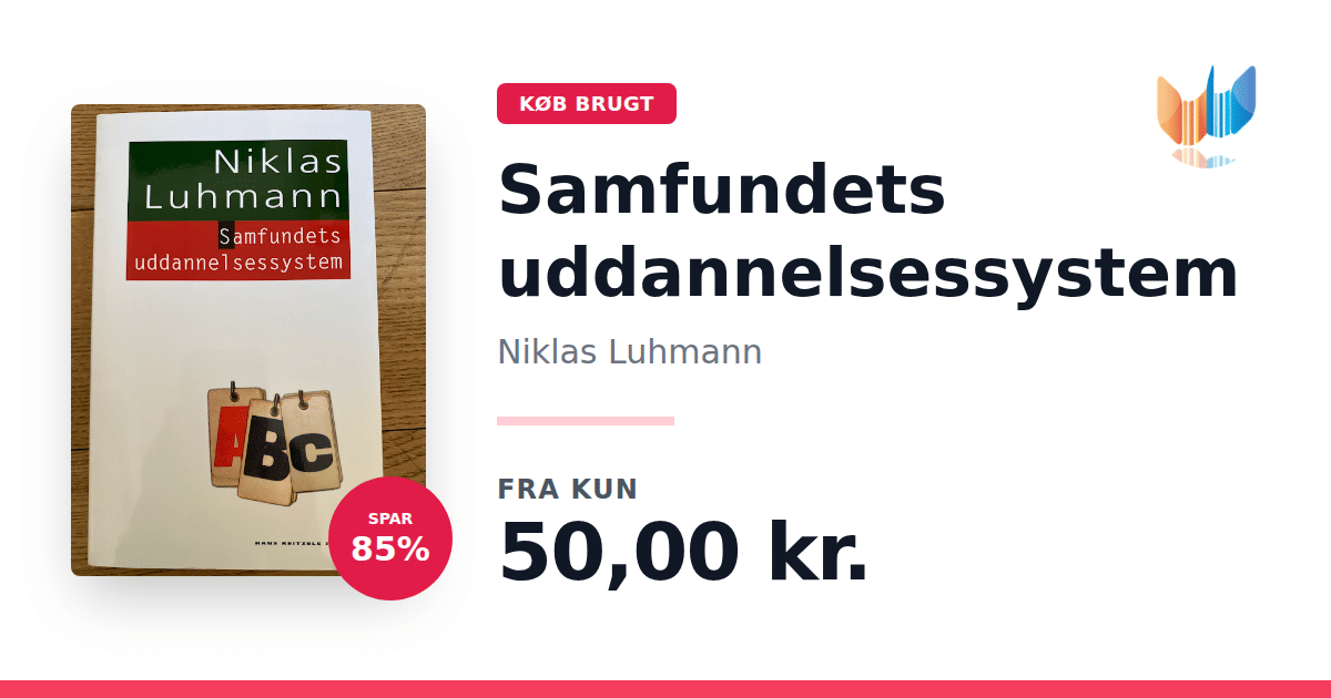 Lige nu kan du købe "Samfundets uddannelsessystem" af Niklas Luhmann til kun 50,00 kr. Du sparer hele 85% af nyprisen! Bogen du ser her er brugt, og i perfekt stand. Vi har i øjeblikket kun et enkelt eksemplar til salg af "Samfundets uddannelsessystem", så slå til mens du kan!