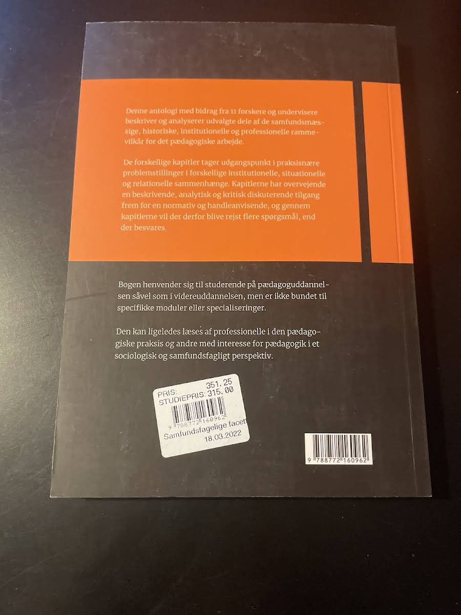 Samfundsfaglige facetter i det pædagogiske arbejde samler bidrag fra forskere og undervisere, som undersøger de historiske, institutionelle og professionelle rammebetingelser for pædagogisk praksis. Gennem en række cases fra dagligdagens pædagogiske felter belyses aktuelle samfundsrelaterede problemstillinger, og der anlægges en beskrivende og analytisk tilgang, der frem for normativ handlevejledning åbner for kritiske og diskuterende perspektiver. Bogens kapitler rejser flere spørgsmål, end de entydigt besvarer, og opfordrer læseren til selv at reflektere over sammenhængen mellem teori, politik og praksis. Målgruppen er primært studerende på pædagoguddannelsen og deltagere i videreuddannelse, men også erfarne praktikere og alle med interesse for samfundsfaglige vinkler på pædagogik vil finde værket relevant.