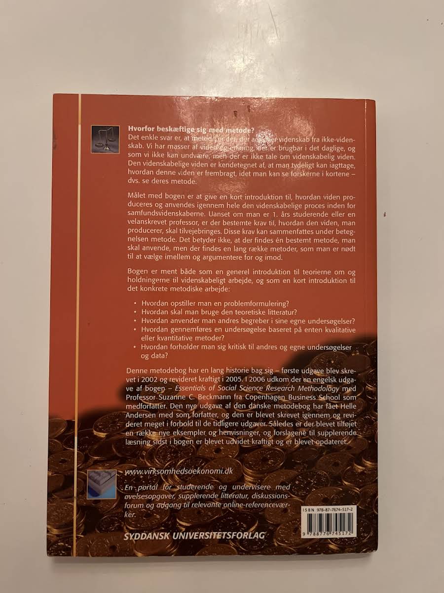 Hvorfor er metode afgørende? Det er netop metoden, der skelner videnskabelig viden fra hverdagens erfaringer. I "Samfundsvidenskabelige metoder" får du en introduktion til, hvordan man systematisk producerer og anvender viden inden for samfundsvidenskaberne. Bogen lægger op til, at man ved at arbejde efter klare metodiske principper kan opnå indsigt, der er både efterprøvet og transparent. Bogen retter sig både mod begyndere og erfarne forskere og gennemgår centrale aspekter af det metodiske arbejde. Herunder lærer du blandt andet, hvordan en problemformulering kan opstilles, hvordan man inddrager teoretisk litteratur og anvender andres begreber i egne undersøgelser – uanset om der er tale om kvalitative eller kvantitative metoder. Med nye eksempler og opdaterede henvisninger bygger denne udgave videre på en lang tradition inden for samfundsvidenskabelig metodeundervisning.