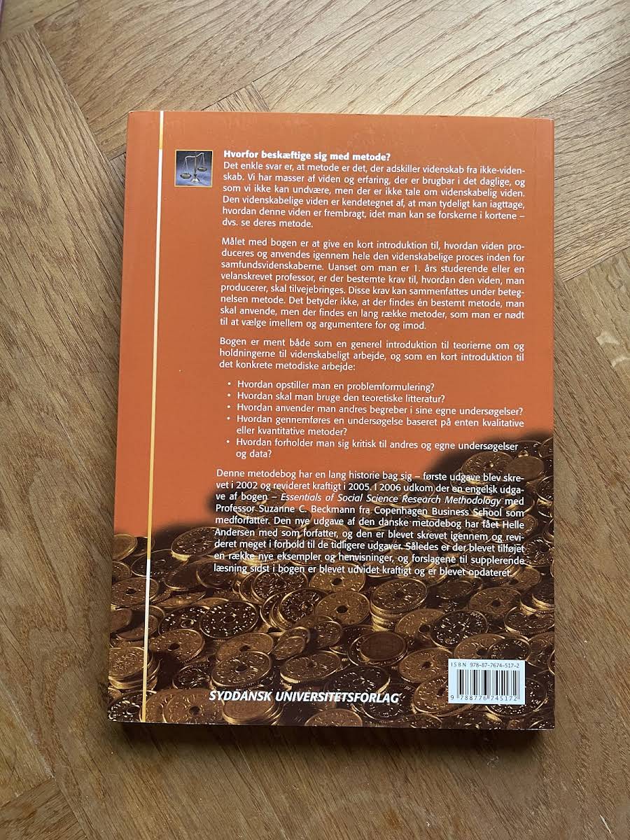 Hvorfor er metode afgørende? Det er netop metoden, der skelner videnskabelig viden fra hverdagens erfaringer. I "Samfundsvidenskabelige metoder" får du en introduktion til, hvordan man systematisk producerer og anvender viden inden for samfundsvidenskaberne. Bogen lægger op til, at man ved at arbejde efter klare metodiske principper kan opnå indsigt, der er både efterprøvet og transparent. Bogen retter sig både mod begyndere og erfarne forskere og gennemgår centrale aspekter af det metodiske arbejde. Herunder lærer du blandt andet, hvordan en problemformulering kan opstilles, hvordan man inddrager teoretisk litteratur og anvender andres begreber i egne undersøgelser – uanset om der er tale om kvalitative eller kvantitative metoder. Med nye eksempler og opdaterede henvisninger bygger denne udgave videre på en lang tradition inden for samfundsvidenskabelig metodeundervisning.