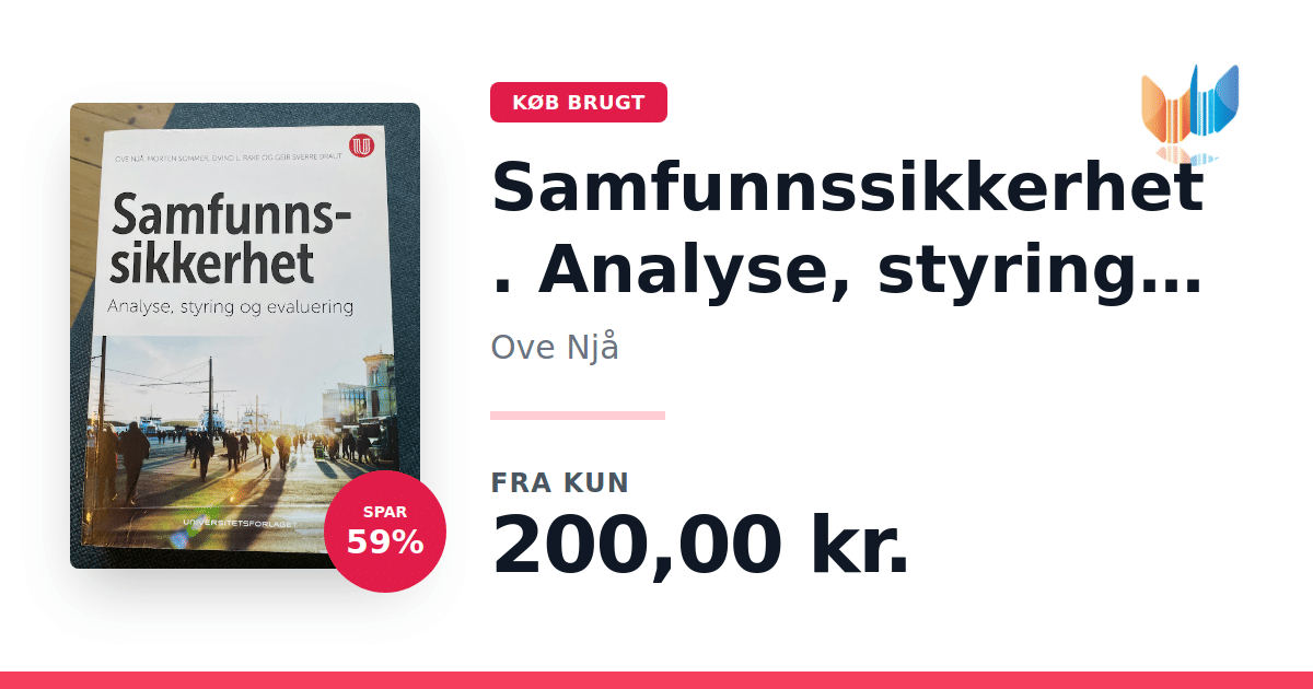 Lige nu kan du købe "Samfunnssikkerhet. Analyse, styring og evaluering" af Ove Njå til kun 200,00 kr. Du sparer hele 59% af nyprisen! Bogen du ser her er brugt, og i perfekt stand. Vi har i øjeblikket kun et enkelt eksemplar til salg af "Samfunnssikkerhet. Analyse, styring og evaluering", så slå til mens du kan!