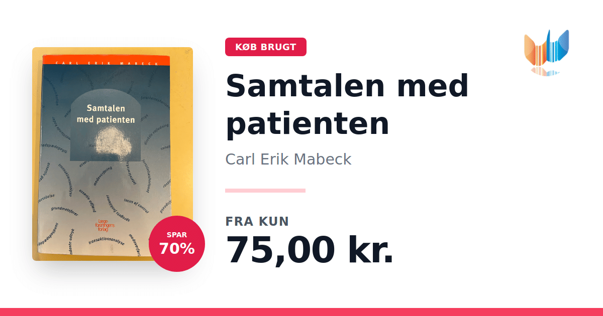 Lige nu kan du købe "Samtalen med patienten" af Carl Erik Mabeck til kun 75,00 kr. Du sparer hele 70% af nyprisen! Bogen du ser her er brugt, og i god stand. Vi har i øjeblikket 3 eksemplarer til salg af "Samtalen med patienten", så husk at se de forskellige udgaver.