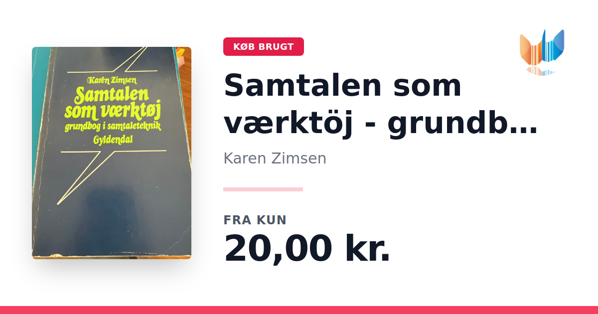 Lige nu kan du købe "Samtalen som værktöj - grundbog i samtaleteknik" af Karen Zimsen til kun 20,00 kr. Bogen du ser her er brugt, og i god stand. Vi har i øjeblikket kun et enkelt eksemplar til salg af "Samtalen som værktöj - grundbog i samtaleteknik", så slå til mens du kan!