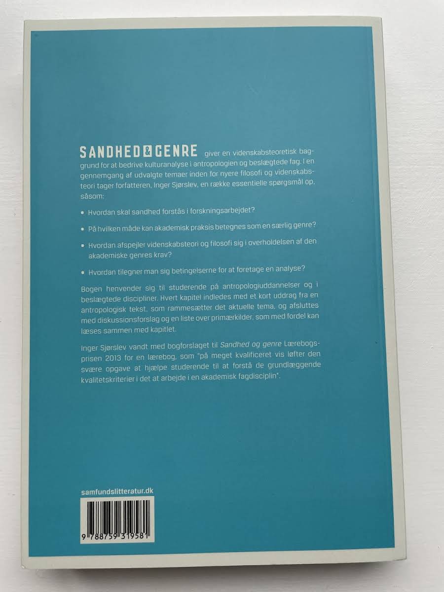 Med Sandhed og genre får antropologistuderende og praktikere et solidt videnskabsteoretisk fundament til at foretage kulturanalyser. Inger Sjørslev udforsker centrale emner inden for nyere filosofi og videnskabsteori og stiller skarpt på, hvordan sandhed forstås i forskningsarbejdet, samt hvordan akademisk praksis kan defineres som en særlig genre. Gennem velstrukturerede kapitler, der indledes med korte uddrag fra antropologiske tekster og afsluttes med diskussionsforslag og anbefalede primærkilder, får læseren metodiske redskaber til at analysere kulturen. Sandhed og genre byder på en nuanceret introduktion til, hvordan filosofi og videnskabsteori sammen væver rammen, der understøtter akademisk arbejde inden for antropologi.