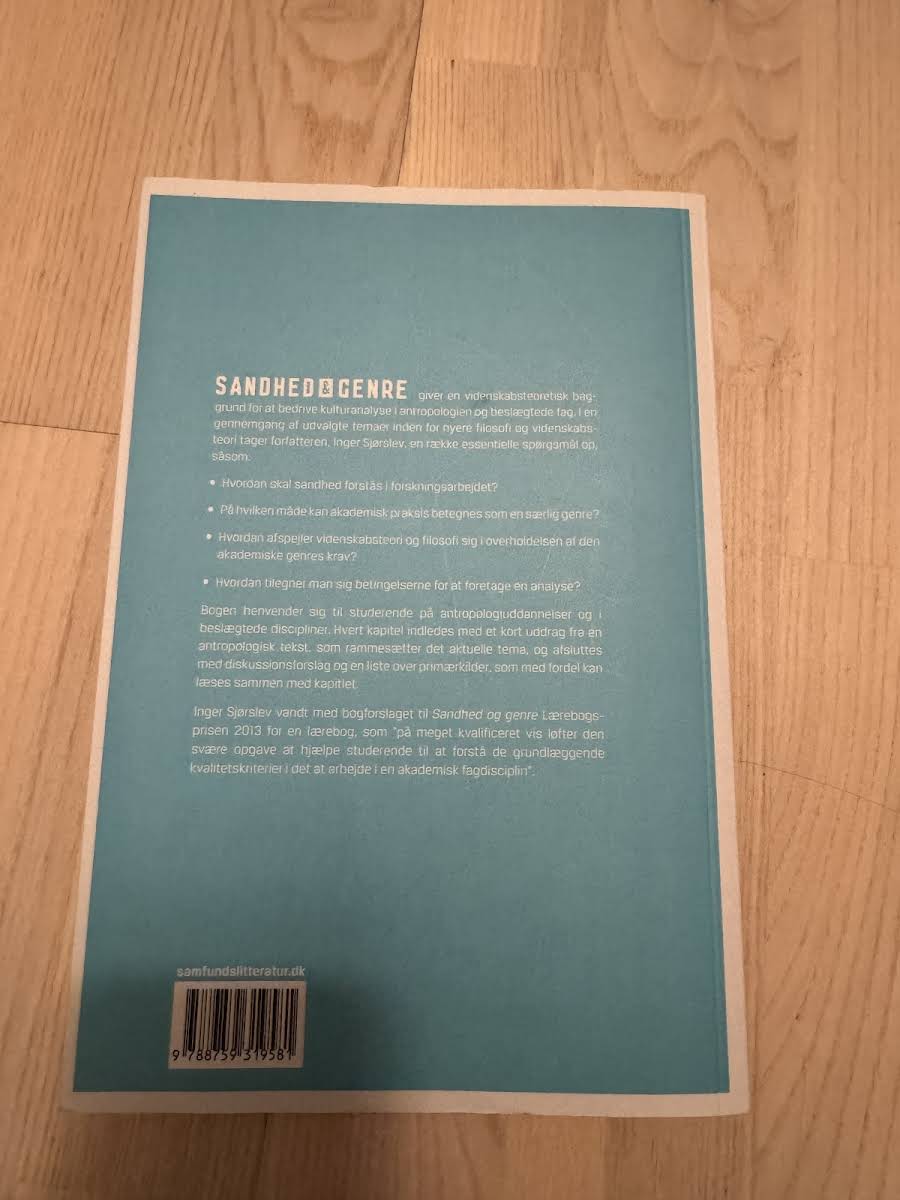 Med Sandhed og genre får antropologistuderende og praktikere et solidt videnskabsteoretisk fundament til at foretage kulturanalyser. Inger Sjørslev udforsker centrale emner inden for nyere filosofi og videnskabsteori og stiller skarpt på, hvordan sandhed forstås i forskningsarbejdet, samt hvordan akademisk praksis kan defineres som en særlig genre. Gennem velstrukturerede kapitler, der indledes med korte uddrag fra antropologiske tekster og afsluttes med diskussionsforslag og anbefalede primærkilder, får læseren metodiske redskaber til at analysere kulturen. Sandhed og genre byder på en nuanceret introduktion til, hvordan filosofi og videnskabsteori sammen væver rammen, der understøtter akademisk arbejde inden for antropologi.