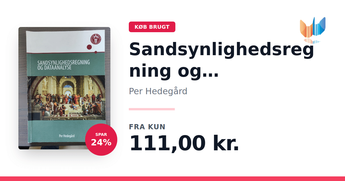Lige nu kan du købe "Sandsynlighedsregning og Dataanalyse" af Per Hedegård til kun 111,00 kr. Du sparer hele 24% af nyprisen! Bogen du ser her er brugt, og i perfekt stand. Vi har i øjeblikket kun et enkelt eksemplar til salg af "Sandsynlighedsregning og Dataanalyse", så slå til mens du kan!