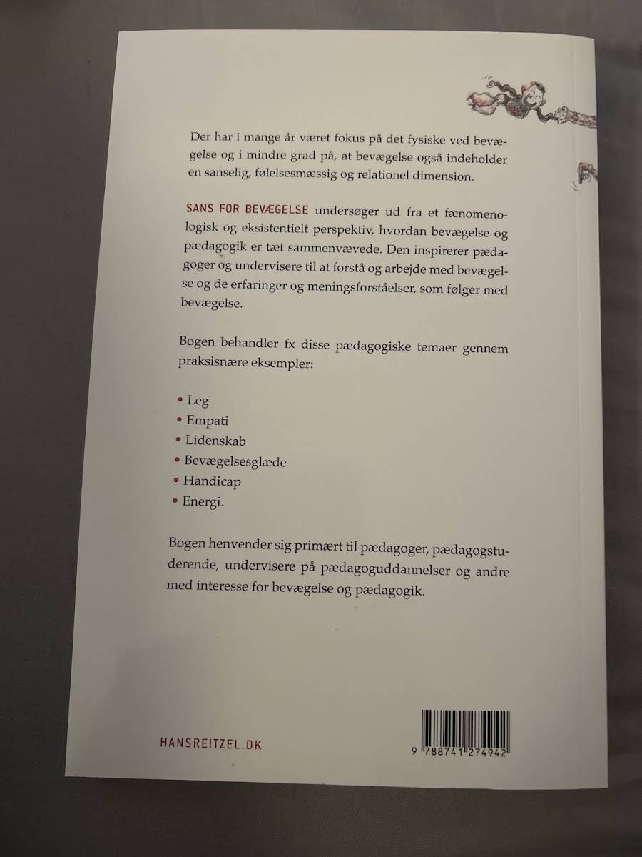 I mange år har bevægelse primært været set som en fysisk aktivitet, mens dens sanselige, følelsesmæssige og relationelle dimension ofte har været overset. Med Sans for bevægelse præsenteres et nyt perspektiv, der udforsker, hvordan bevægelse og pædagogik er uløseligt forbundne. Gennem en fænomenologisk og eksistentiel tilgang åbner bogen op for nye måder at forstå og arbejde med de erfaringer og den meningsdannelse, som bevægelse kan skabe i den pædagogiske praksis. Bogen dykker ned i en række centrale pædagogiske temaer, såsom leg, empati, lidenskab, bevægelsesglæde, handicap og energi. Forfatterne illustrerer, hvordan disse aspekter kan integreres i det daglige pædagogiske arbejde og bidrager til en dybere anerkendelse af bevægelsens betydning i relationen mellem lærere og børn. Sans for bevægelse henvender sig særligt til pædagoger, pædagogstuderende samt undervisere på pædagoguddannelser, og den vækker interesse hos alle, der ønsker at udforske de mange facetter af bevægelse i den pædagogiske praksis.