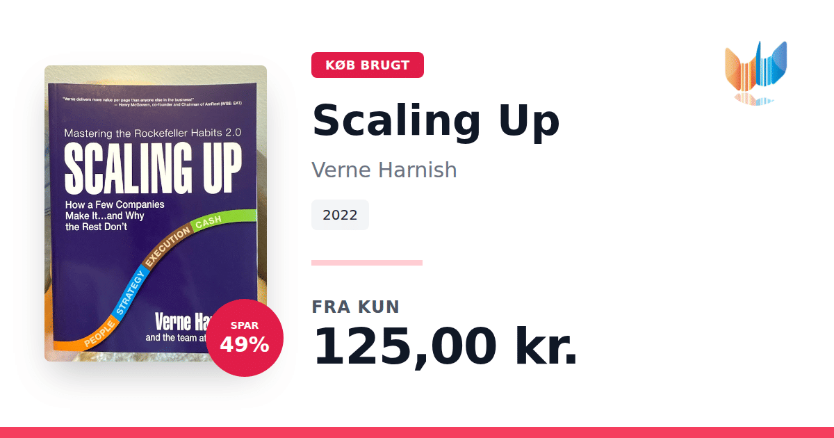 Lige nu kan du købe "Scaling Up" af Verne Harnish til kun 125,00 kr. Du sparer hele 49% af nyprisen! Bogen du ser her er brugt, og i perfekt stand. Vi har i øjeblikket kun et enkelt eksemplar til salg af "Scaling Up", så slå til mens du kan!