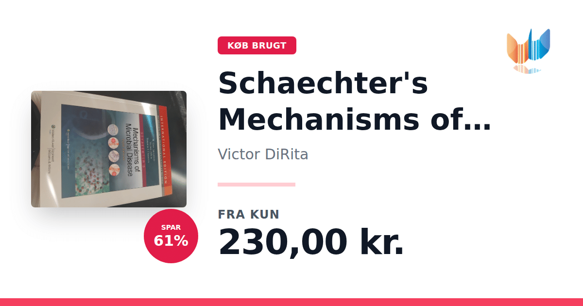 Lige nu kan du købe "Schaechter's Mechanisms of Microbial Disease" af Victor DiRita til kun 230,00 kr. Du sparer hele 61% af nyprisen! Bogen du ser her er brugt, og i god stand. Vi har i øjeblikket 3 eksemplarer til salg af "Schaechter's Mechanisms of Microbial Disease", så husk at se de forskellige udgaver.