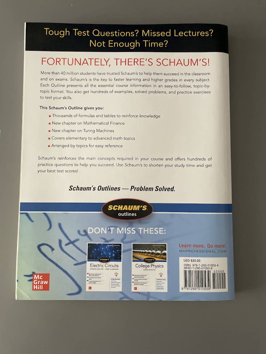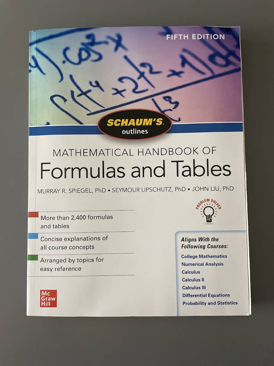• Schaum's Outline of Mathematical Handbook of Formulas and Tables, Fifth Edition, Seymour Lipschutz, Murray Spiegel, John Liu, 9781260010534