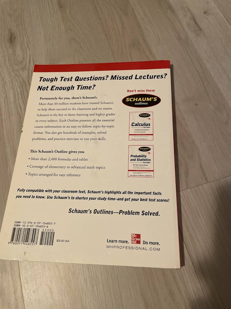 • Schaum's Outline of Mathematical Handbook of Formulas and Tables, 3ed, Murray R. Spiegel, Seymour Lipschutz, John Liu, 9780071548557