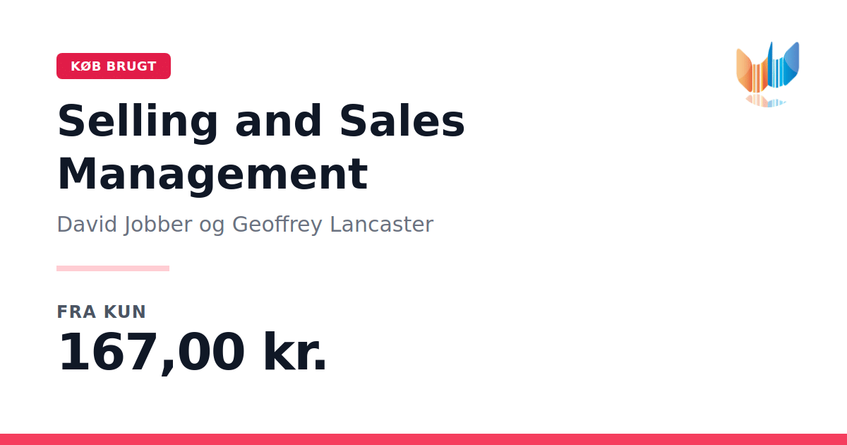 Lige nu kan du købe "Selling and Sales Management" af David Jobber og Geoffrey Lancaster til kun 167,00 kr. Bogen du ser her er brugt, og i perfekt stand. Vi har i øjeblikket kun et enkelt eksemplar til salg af "Selling and Sales Management", så slå til mens du kan!